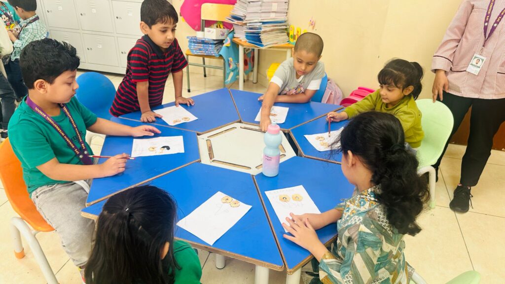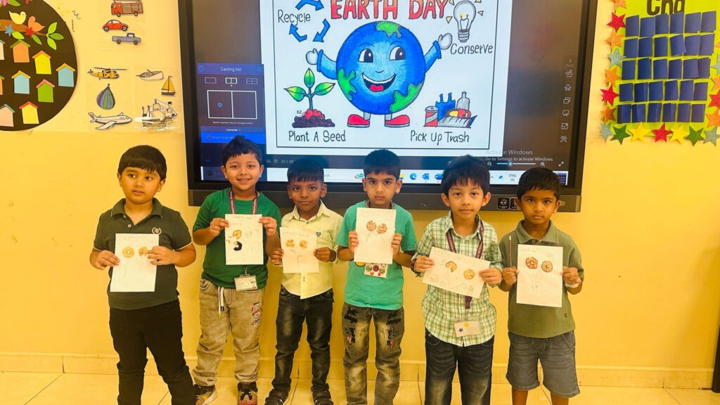 On Earth day children came dressed up in various shades of Green color . In a fun and creative endeavor, the kindergarten children engaged in a “Best Out of Waste” activity, using pencil shavings to create beautiful flower art. This activity aimed to instill the values of recycling and sustainability while encouraging artistic expression.