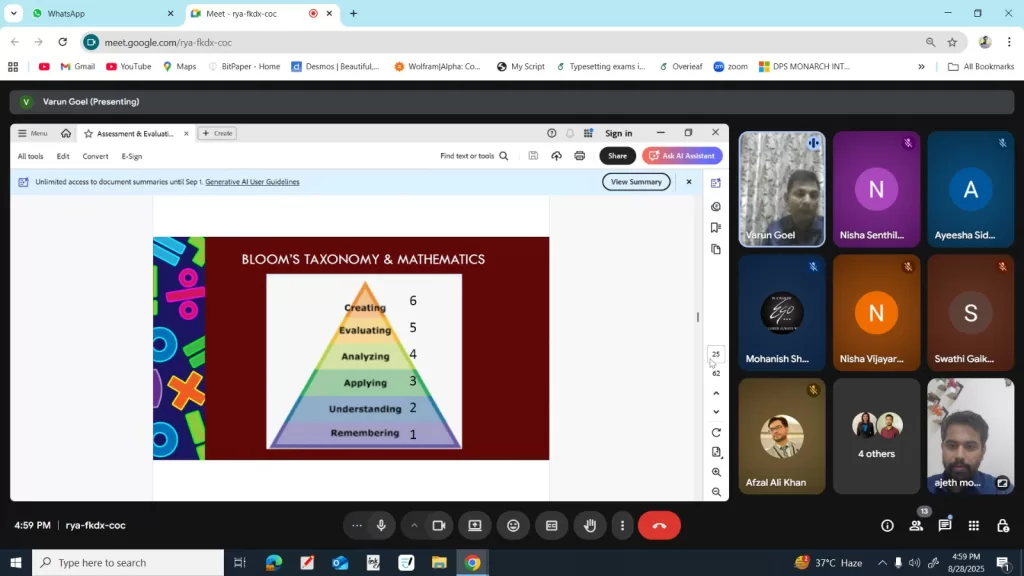 The online Mathematics Continuous Professional Development (CPD) session, led by Mr. Varun Goel on August 28, 2025, focused on elevating math assessment, attended by middle and secondary school teachers. Mr. Goel, a highly experienced educationalist and math faculty member at Shiv Nadar School, Gurugram, delivered insightful strategies for smart evaluation and innovative assessment formation in mathematics.