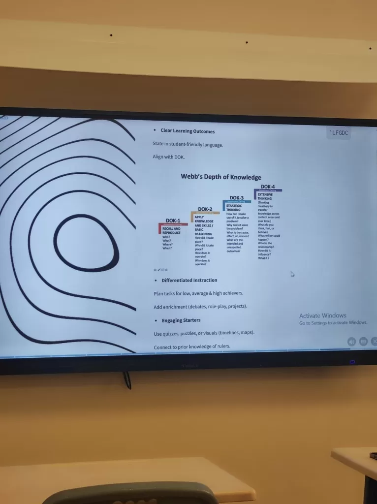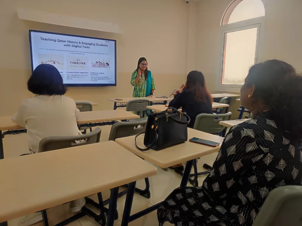 The teachers were actively engaged in exploring a variety of digital tools and platforms that can be used to enhance teaching, including:Google Earth & Timelines: For exploring historical sites and creating custom timelines, Padlet & Jam board: For collaborative student reflections and idea mapping, Kahoot & Quizizz: For creating interactive quizzes on historical facts,Canva & Adobe Express: For designing digital posters and student presentations, Virtual Museum Tours: Including the National Museum of Qatar and Barzan Towers.