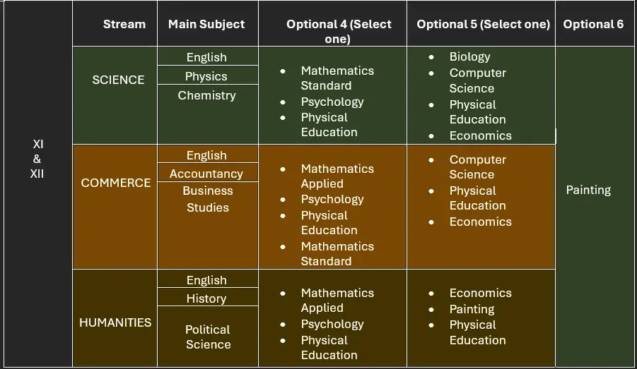 Core Subjects: Students can choose from a range of subjects including Science, Mathematics, Social Science, and Languages.