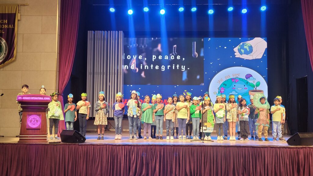 The young Monarchians of Grade 4A celebrated Earth Day with energy and purpose. They presented a powerful skit, inspiring speech, touching poem, and a vibrant dance. Each act highlighted key environmental issues like pollution, deforestation, and climate change.