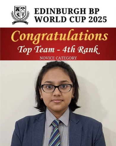 Our school celebrates the success of Aeindri Ghosh of Grade 10 D for excelling at Edinburgh BP Online World Cup 2025 Debate on 22nd March and 23rd March 2025. Her team secured 4th Best Novice Team, and Aeindri was recognized as the 14th Best Speaker. The was a two-day online event that featured five intense rounds with participants aged 15-18 years.
